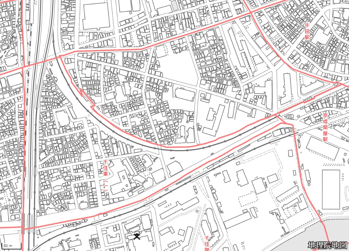 地図の内容は国土地理院が作成した時点の情報を反映しており、実際の現況とは異なる場合があります。現在は存在しない建物や道路、新たに整備された施設などが含まれることがありますので、あらかじめご了承ください。