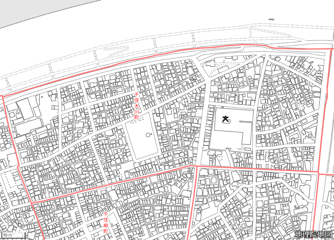 地図の内容は国土地理院が作成した時点の情報を反映しており、実際の現況とは異なる場合があります。現在は存在しない建物や道路、新たに整備された施設などが含まれることがありますので、あらかじめご了承ください。