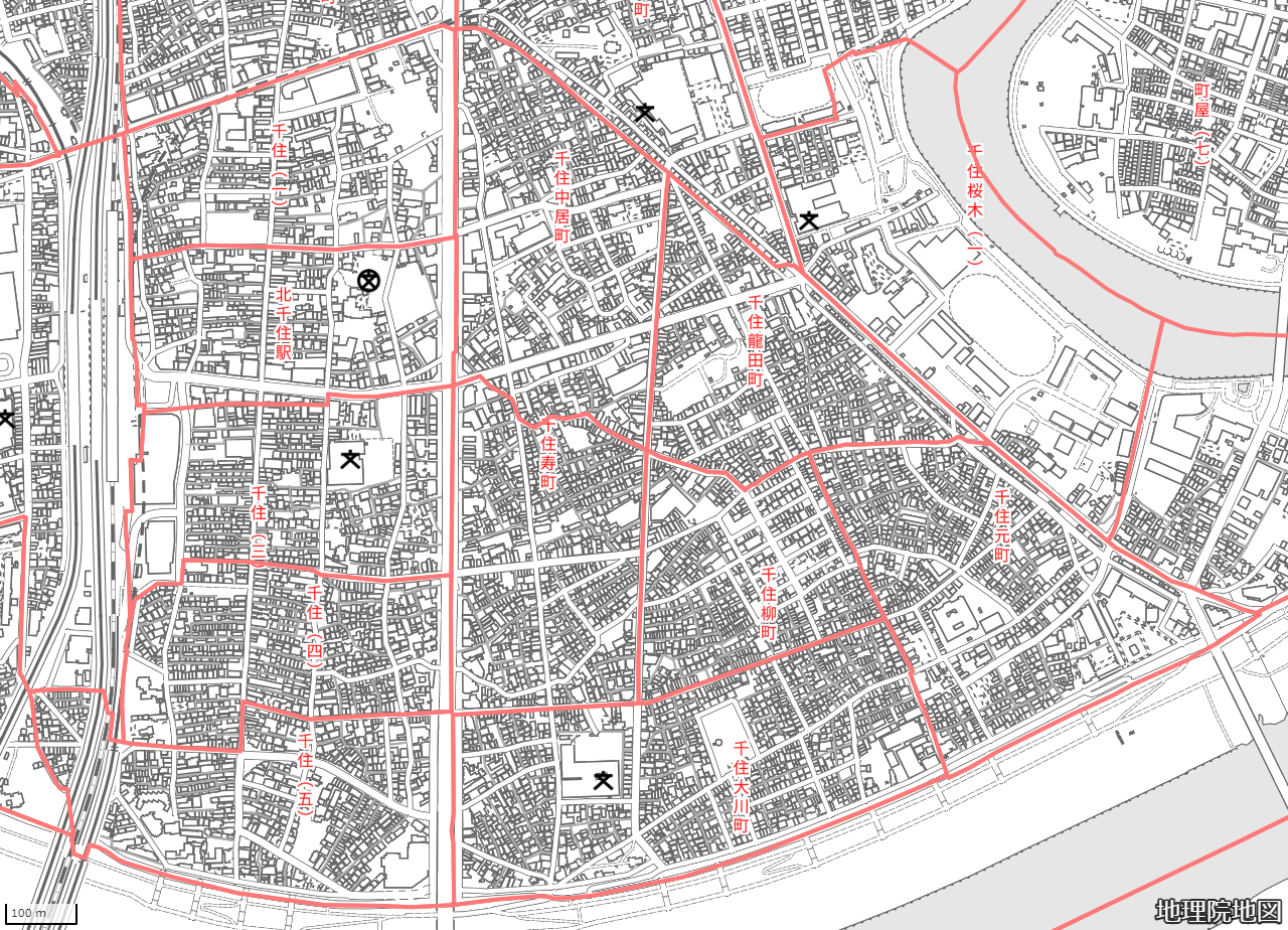 地図の内容は国土地理院が作成した時点の情報を反映しており、実際の現況とは異なる場合があります。現在は存在しない建物や道路、新たに整備された施設などが含まれることがありますので、あらかじめご了承ください。