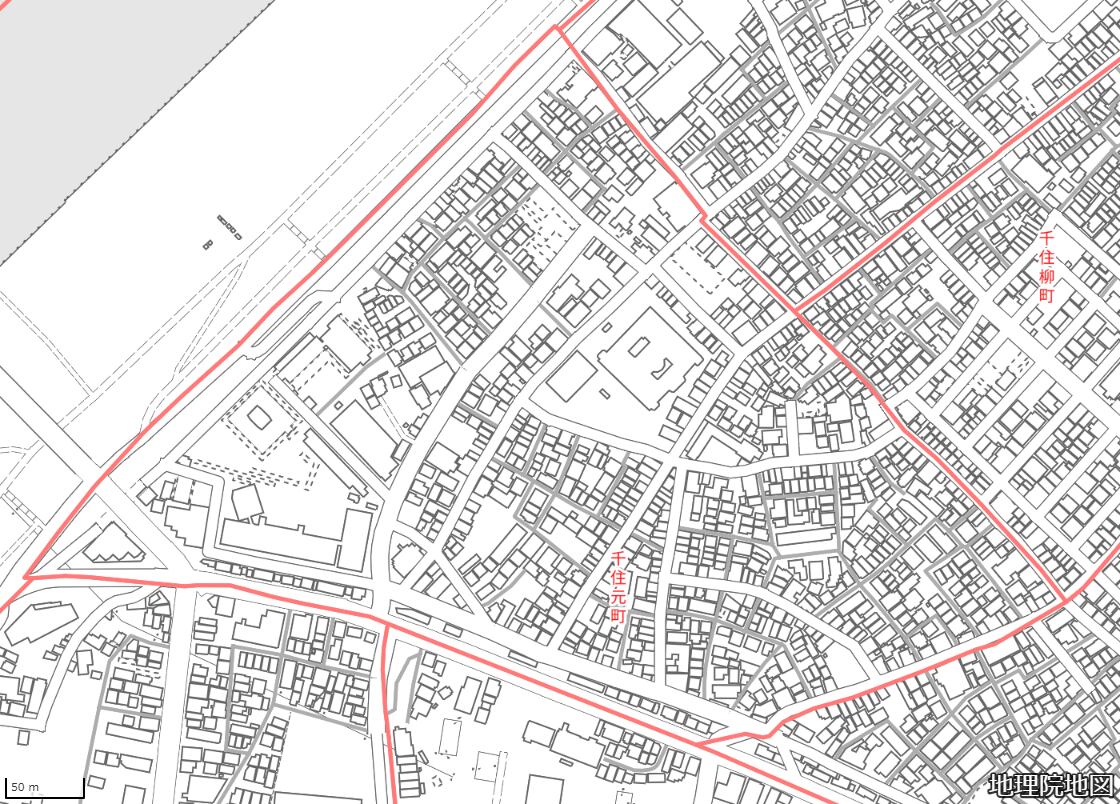 地図の内容は国土地理院が作成した時点の情報を反映しており、実際の現況とは異なる場合があります。現在は存在しない建物や道路、新たに整備された施設などが含まれることがありますので、あらかじめご了承ください。