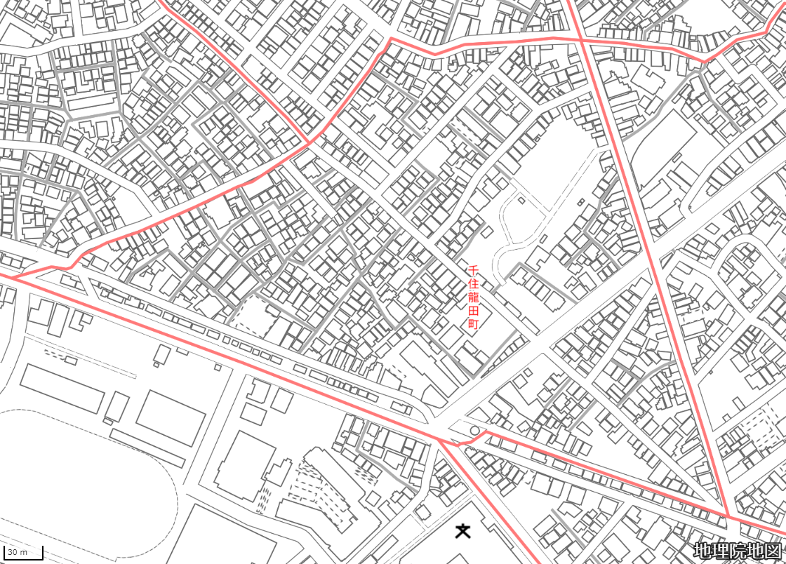 地図の内容は国土地理院が作成した時点の情報を反映しており、実際の現況とは異なる場合があります。現在は存在しない建物や道路、新たに整備された施設などが含まれることがありますので、あらかじめご了承ください。