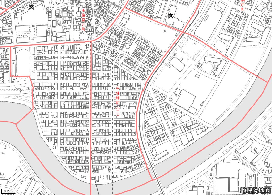 地図の内容は国土地理院が作成した時点の情報を反映しており、実際の現況とは異なる場合があります。現在は存在しない建物や道路、新たに整備された施設などが含まれることがありますので、あらかじめご了承ください。