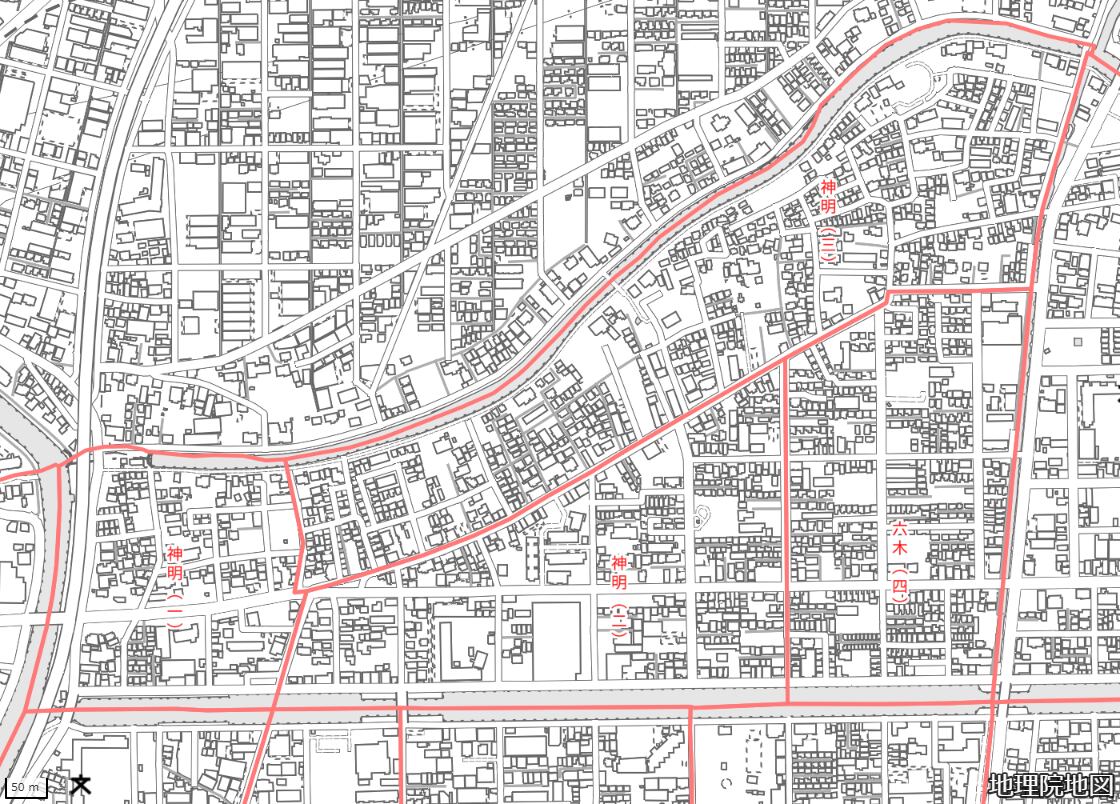 地図の内容は国土地理院が作成した時点の情報を反映しており、実際の現況とは異なる場合があります。現在は存在しない建物や道路、新たに整備された施設などが含まれることがありますので、あらかじめご了承ください。