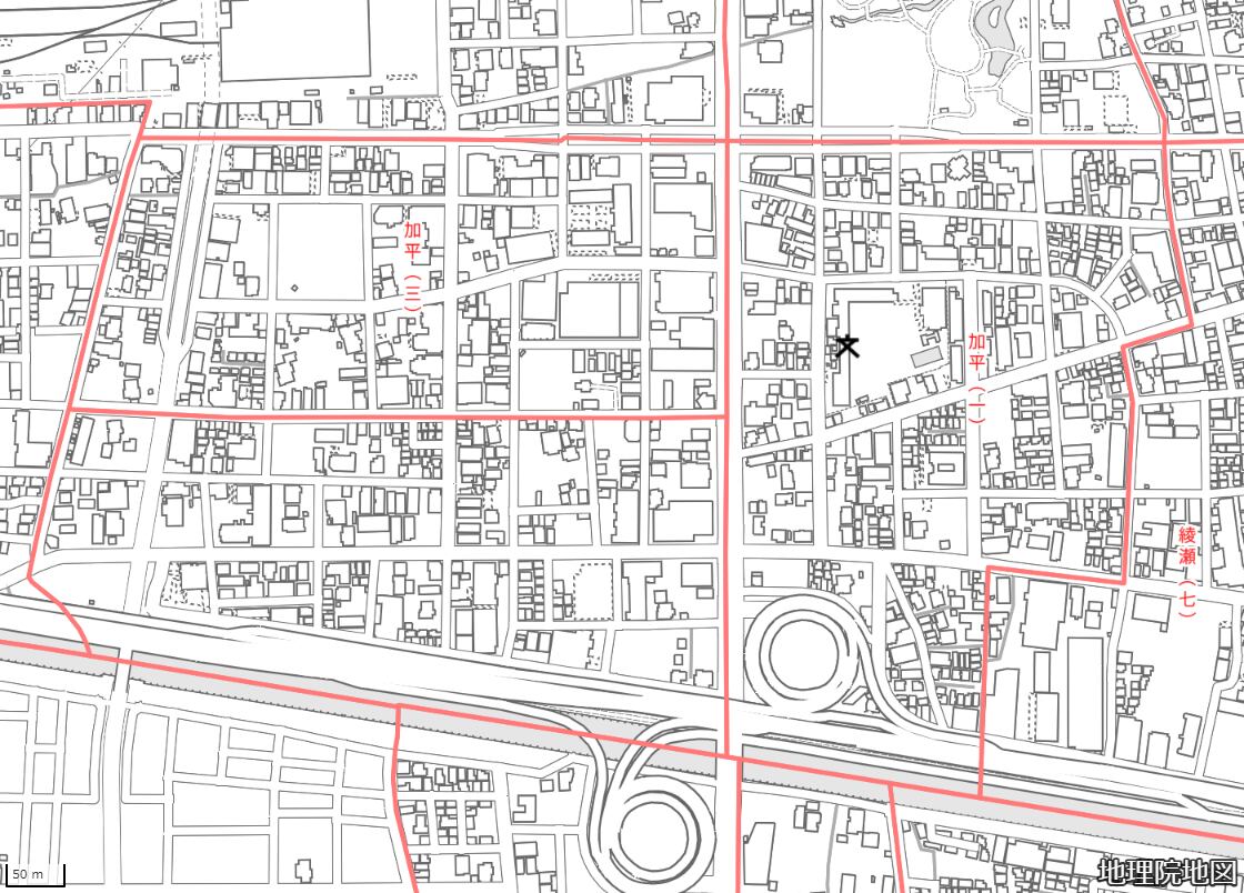 地図の内容は国土地理院が作成した時点の情報を反映しており、実際の現況とは異なる場合があります。現在は存在しない建物や道路、新たに整備された施設などが含まれることがありますので、あらかじめご了承ください。