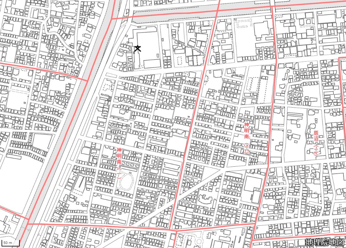 地図の内容は国土地理院が作成した時点の情報を反映しており、実際の現況とは異なる場合があります。現在は存在しない建物や道路、新たに整備された施設などが含まれることがありますので、あらかじめご了承ください。