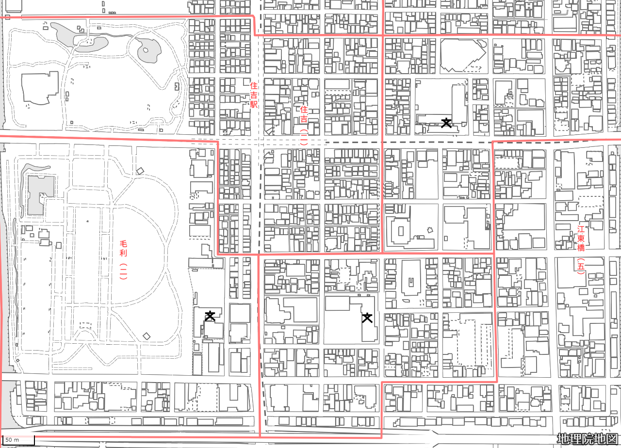 地図の内容は国土地理院が作成した時点の情報を反映しており、実際の現況とは異なる場合があります。現在は存在しない建物や道路、新たに整備された施設などが含まれることがありますので、あらかじめご了承ください。