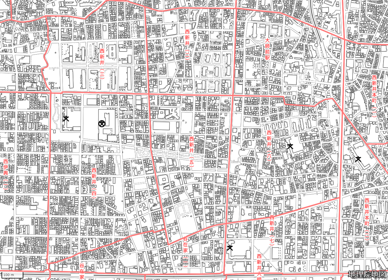 地図の内容は国土地理院が作成した時点の情報を反映しており、実際の現況とは異なる場合があります。現在は存在しない建物や道路、新たに整備された施設などが含まれることがありますので、あらかじめご了承ください。