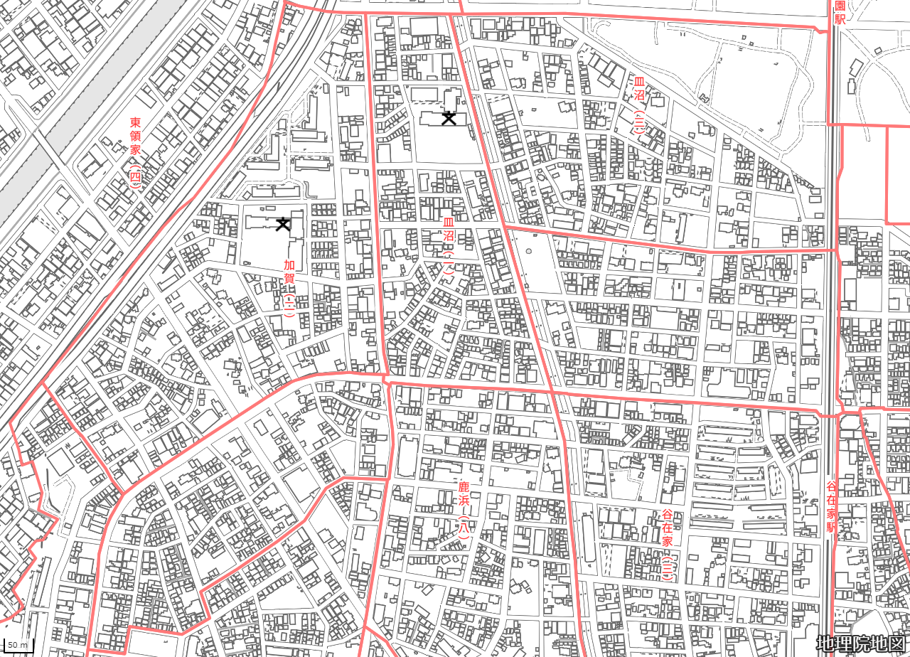地図の内容は国土地理院が作成した時点の情報を反映しており、実際の現況とは異なる場合があります。現在は存在しない建物や道路、新たに整備された施設などが含まれることがありますので、あらかじめご了承ください。