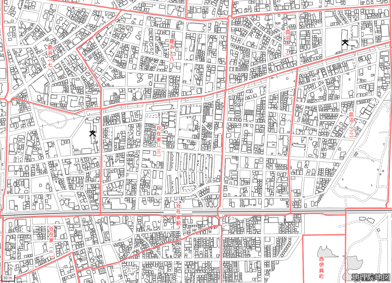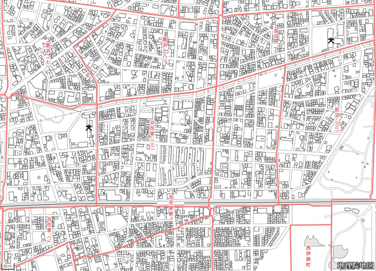 地図の内容は国土地理院が作成した時点の情報を反映しており、実際の現況とは異なる場合があります。現在は存在しない建物や道路、新たに整備された施設などが含まれることがありますので、あらかじめご了承ください。