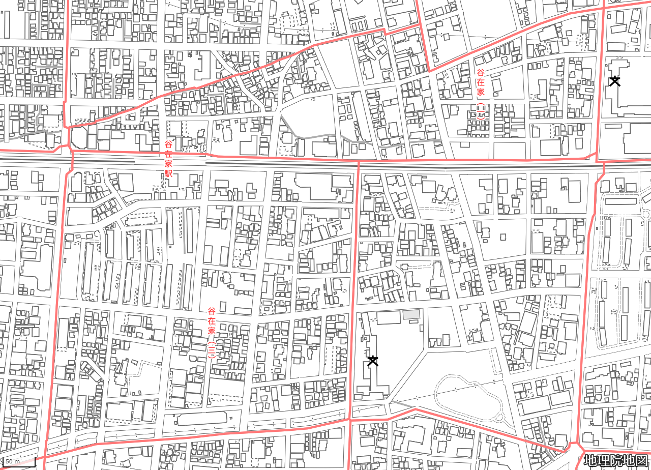 地図の内容は国土地理院が作成した時点の情報を反映しており、実際の現況とは異なる場合があります。現在は存在しない建物や道路、新たに整備された施設などが含まれることがありますので、あらかじめご了承ください。