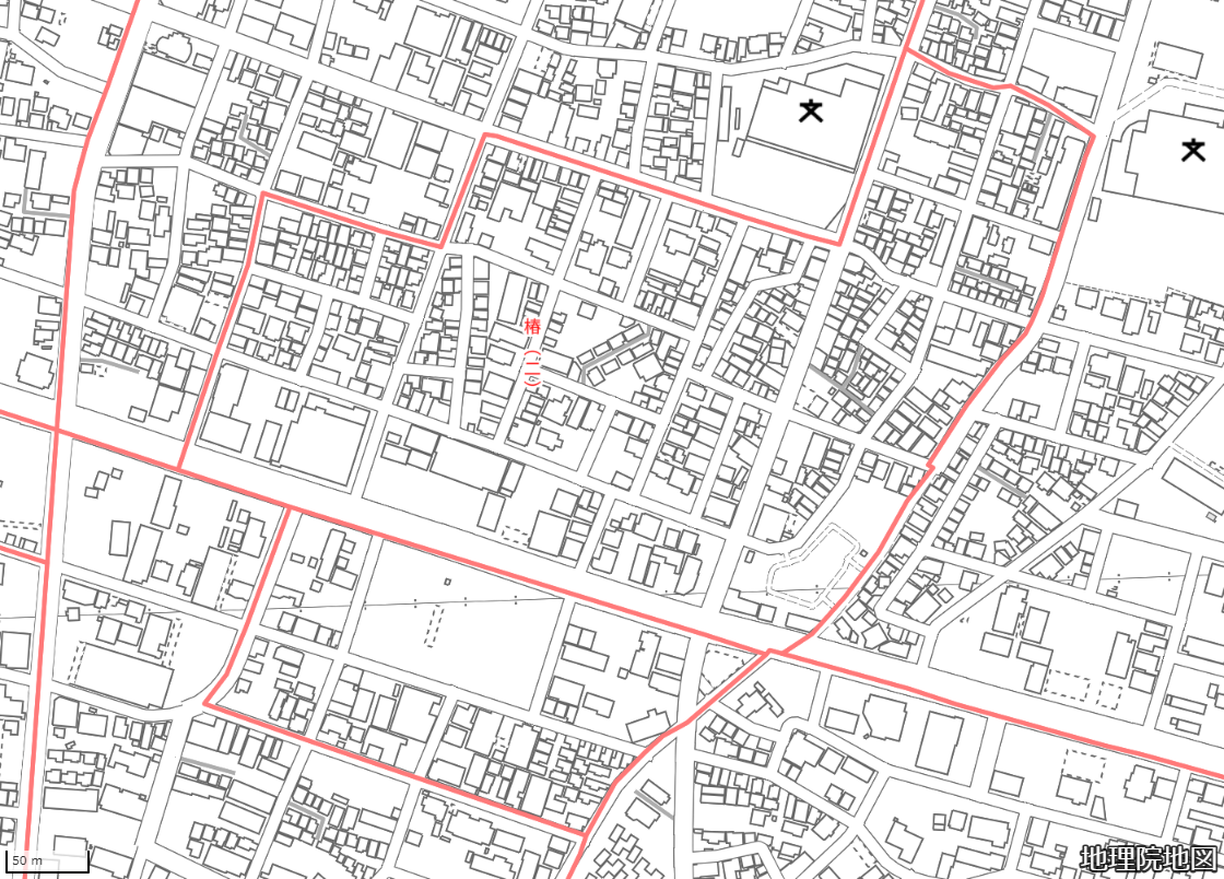 地図の内容は国土地理院が作成した時点の情報を反映しており、実際の現況とは異なる場合があります。現在は存在しない建物や道路、新たに整備された施設などが含まれることがありますので、あらかじめご了承ください。