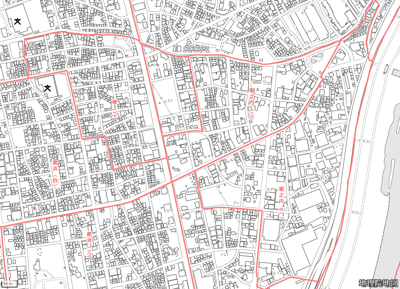 地図の内容は国土地理院が作成した時点の情報を反映しており、実際の現況とは異なる場合があります。現在は存在しない建物や道路、新たに整備された施設などが含まれることがありますので、あらかじめご了承ください。