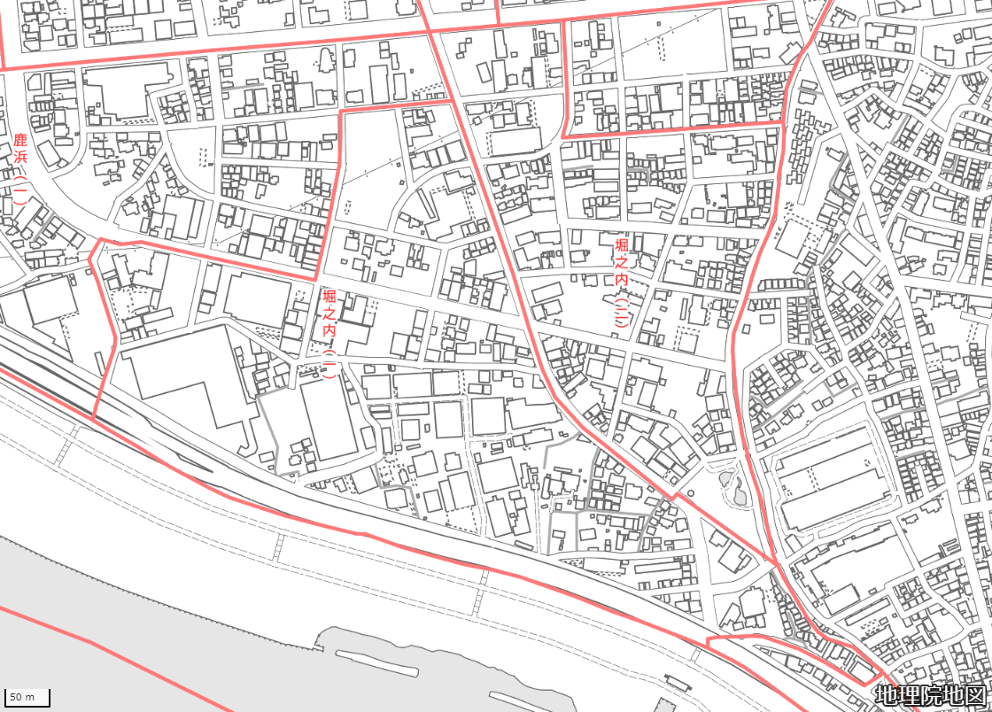境界付近に建物が存在しない場合や、河川や海岸がある場合には、地図全体の視認性を高める為に一部境界を省略している場合がございます。