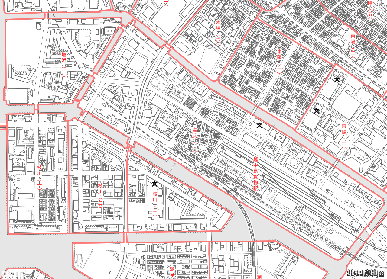 地図の内容は国土地理院が作成した時点の情報を反映しており、実際の現況とは異なる場合があります。現在は存在しない建物や道路、新たに整備された施設などが含まれることがありますので、あらかじめご了承ください。