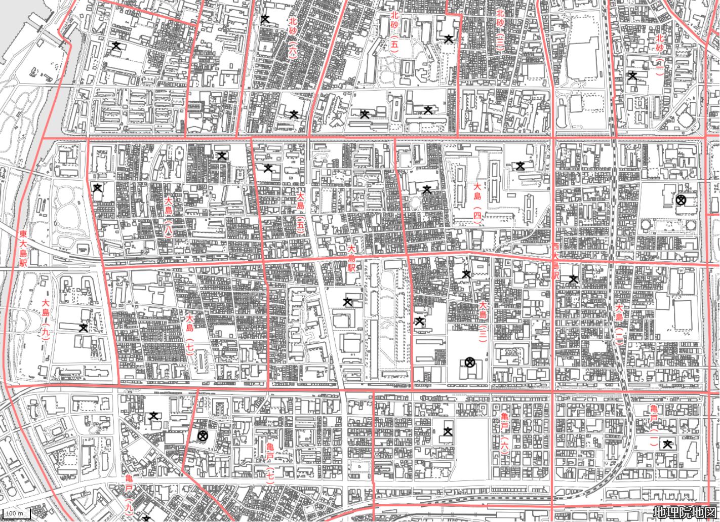 地図の内容は国土地理院が作成した時点の情報を反映しており、実際の現況とは異なる場合があります。現在は存在しない建物や道路、新たに整備された施設などが含まれることがありますので、あらかじめご了承ください。
