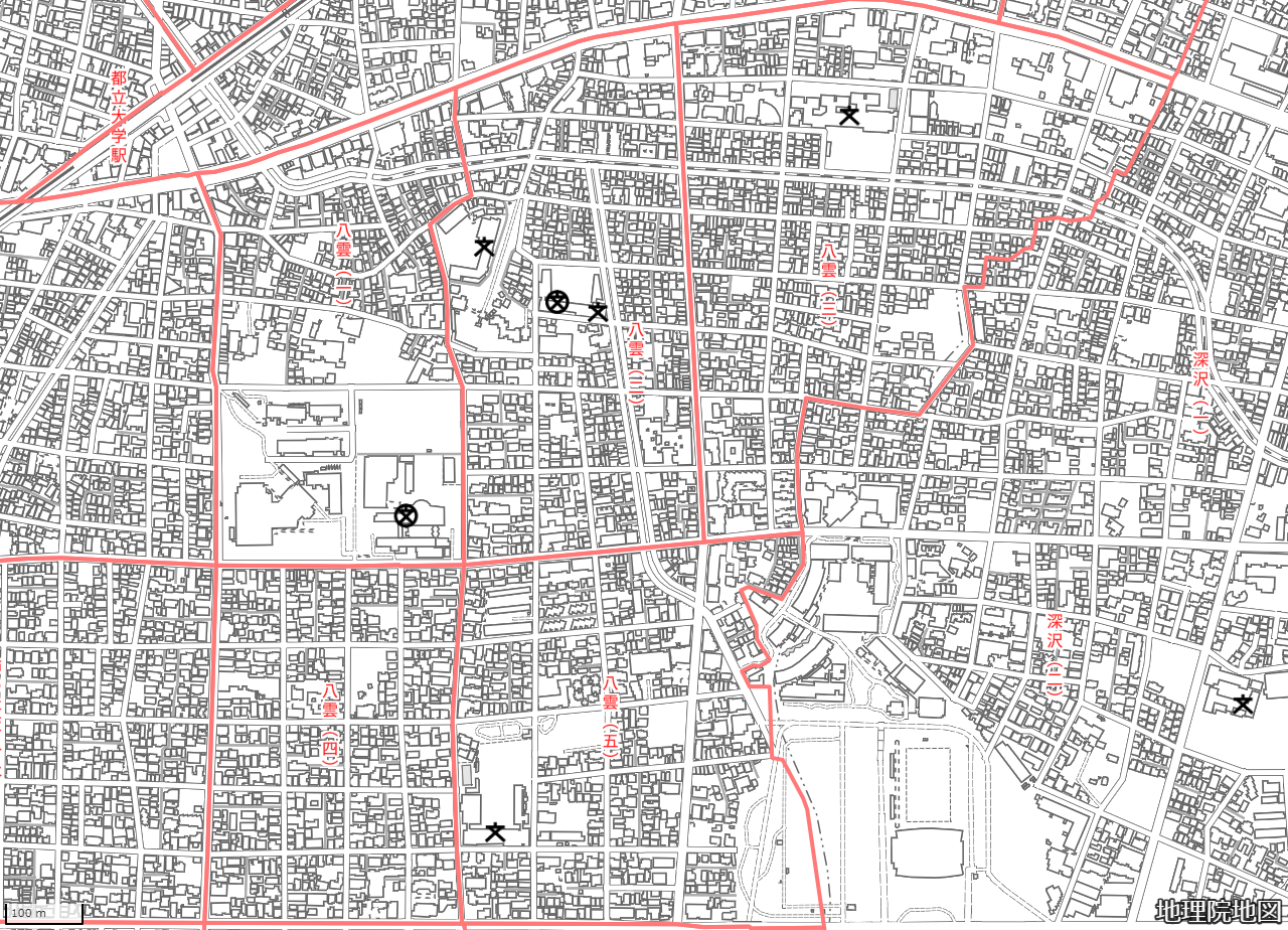 地図の内容は国土地理院が作成した時点の情報を反映しており、実際の現況とは異なる場合があります。現在は存在しない建物や道路、新たに整備された施設などが含まれることがありますので、あらかじめご了承ください。