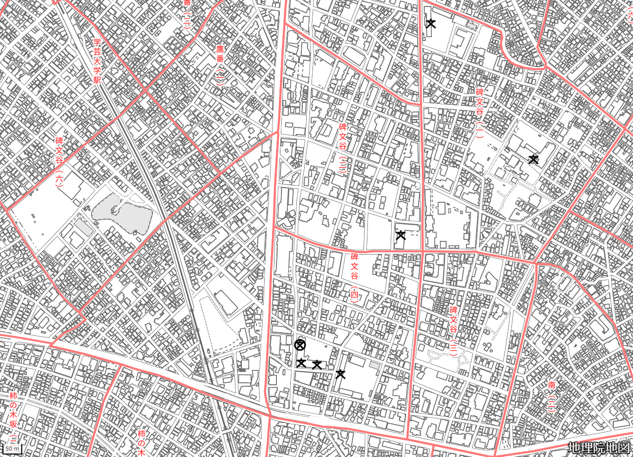 地図の内容は国土地理院が作成した時点の情報を反映しており、実際の現況とは異なる場合があります。現在は存在しない建物や道路、新たに整備された施設などが含まれることがありますので、あらかじめご了承ください。