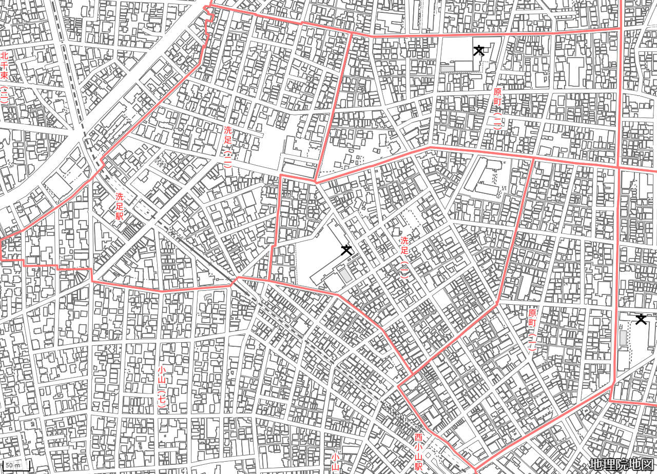 地図の内容は国土地理院が作成した時点の情報を反映しており、実際の現況とは異なる場合があります。現在は存在しない建物や道路、新たに整備された施設などが含まれることがありますので、あらかじめご了承ください。