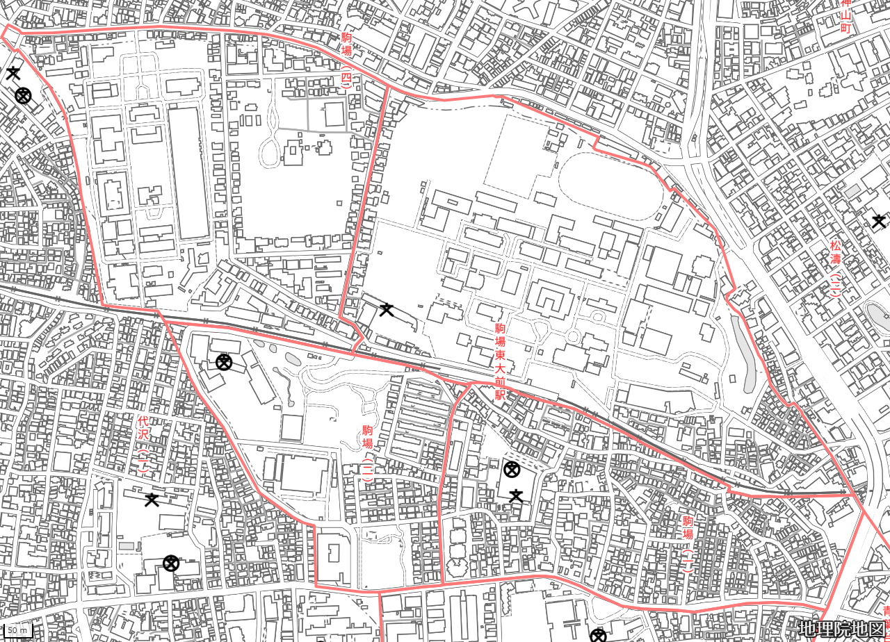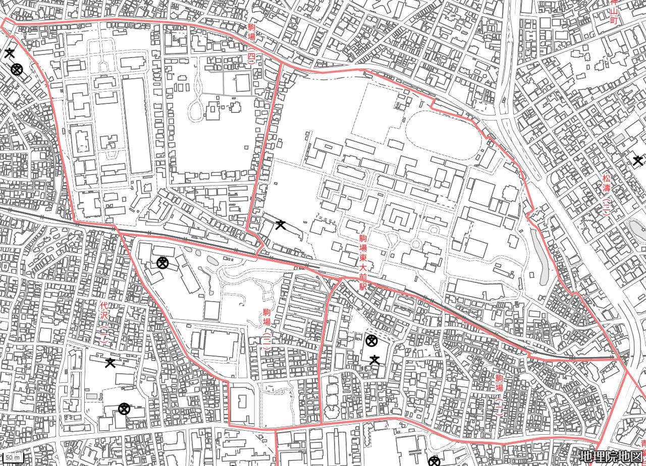 地図の内容は国土地理院が作成した時点の情報を反映しており、実際の現況とは異なる場合があります。現在は存在しない建物や道路、新たに整備された施設などが含まれることがありますので、あらかじめご了承ください。