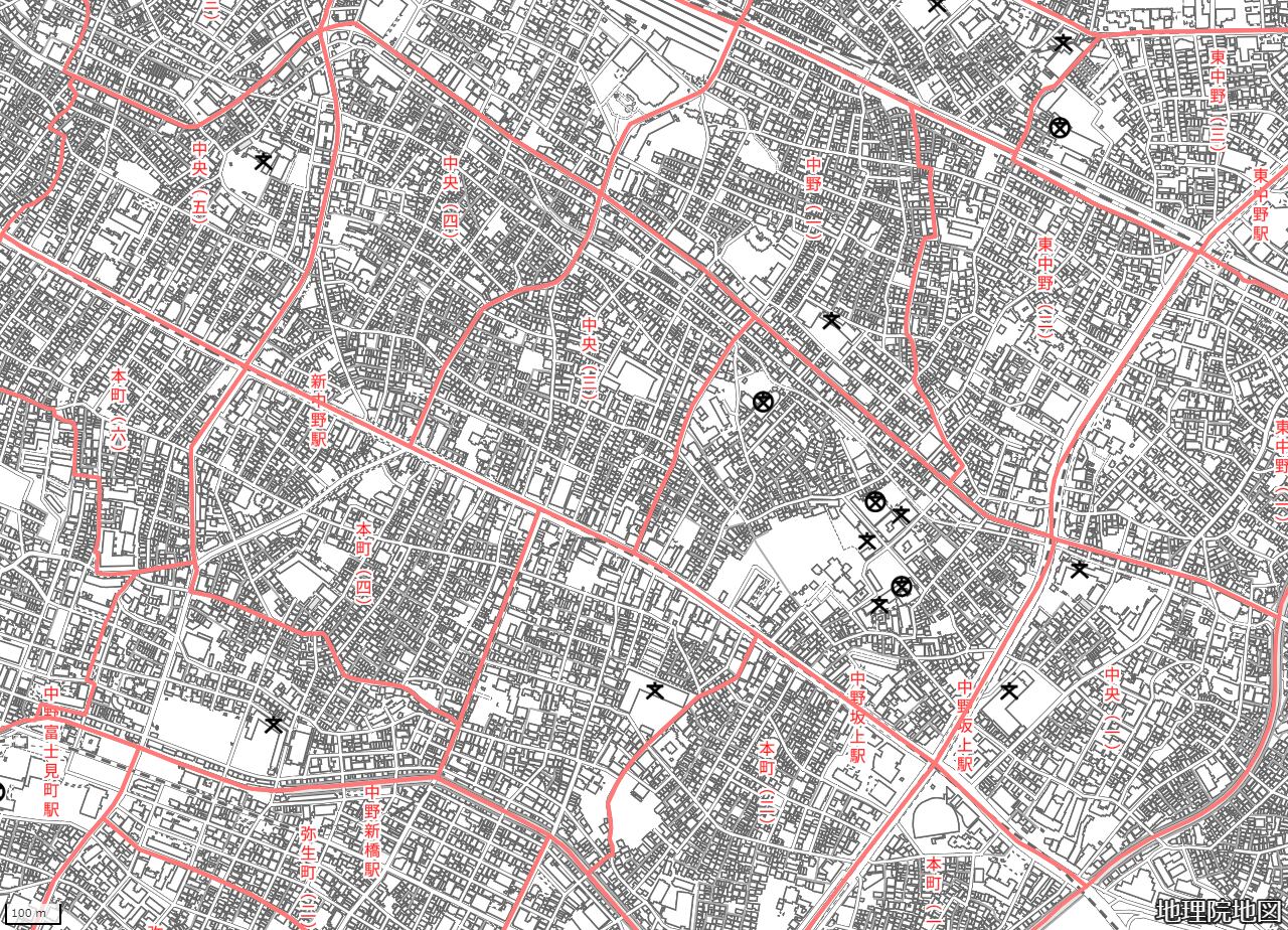 地図の内容は国土地理院が作成した時点の情報を反映しており、実際の現況とは異なる場合があります。現在は存在しない建物や道路、新たに整備された施設などが含まれることがありますので、あらかじめご了承ください。