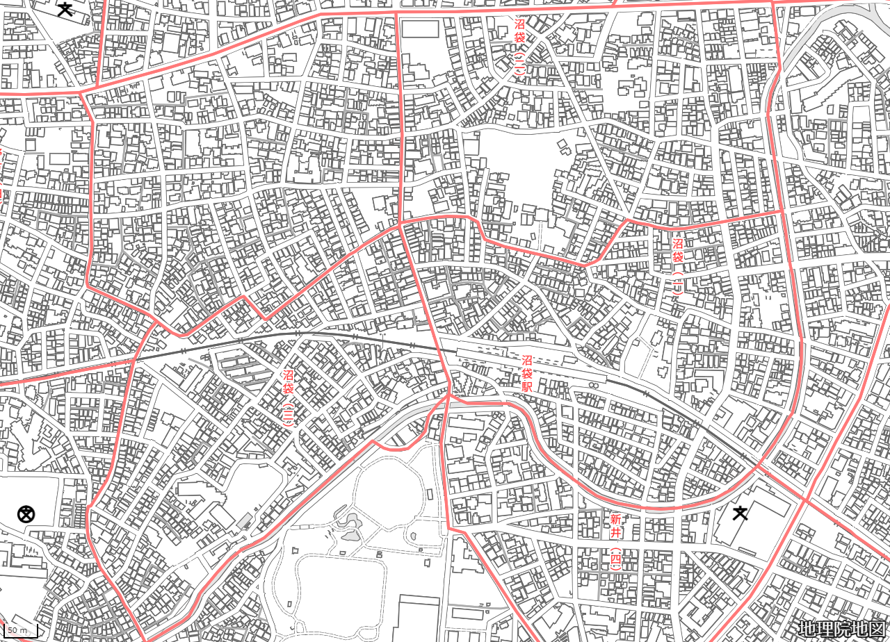 地図の内容は国土地理院が作成した時点の情報を反映しており、実際の現況とは異なる場合があります。現在は存在しない建物や道路、新たに整備された施設などが含まれることがありますので、あらかじめご了承ください。
