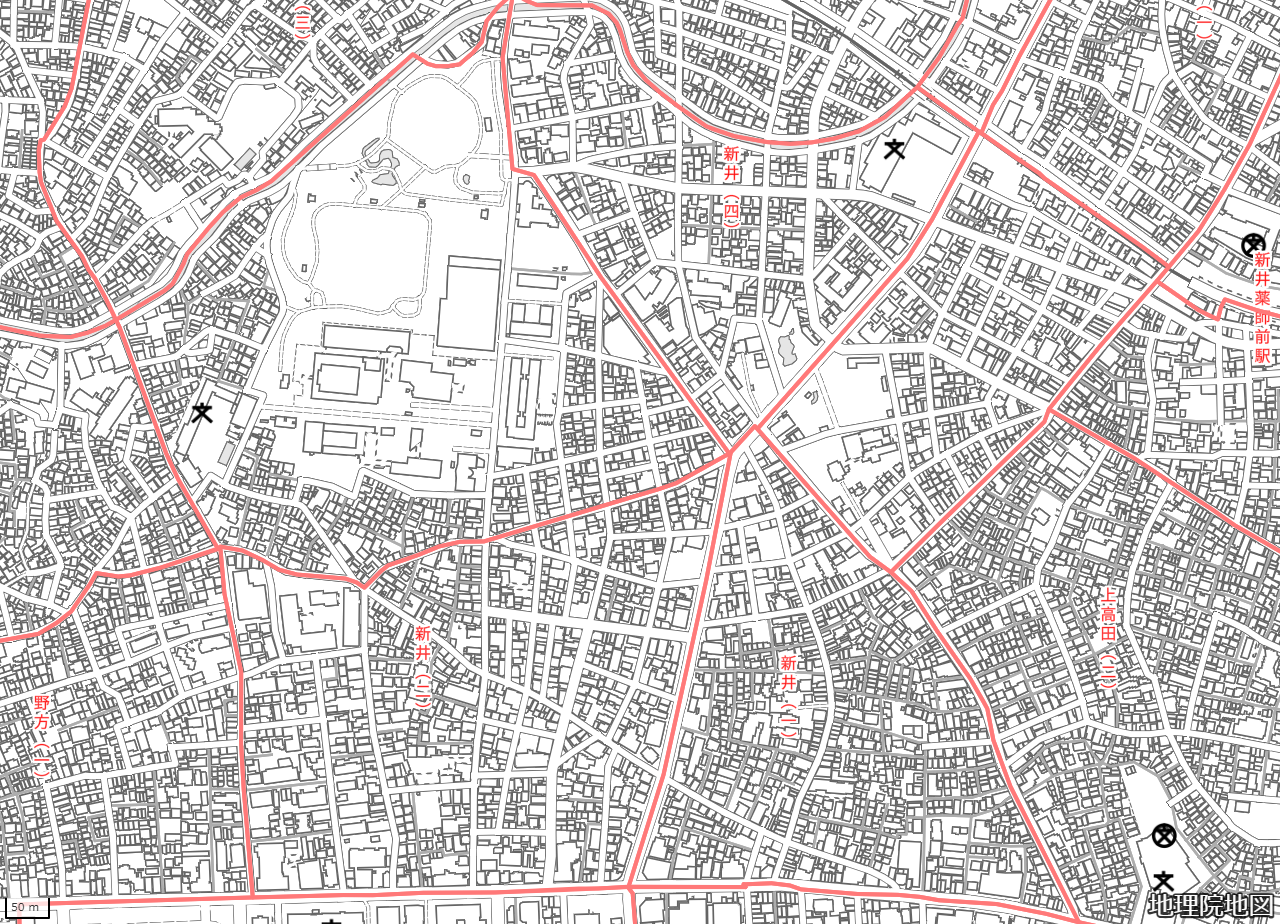 地図の内容は国土地理院が作成した時点の情報を反映しており、実際の現況とは異なる場合があります。現在は存在しない建物や道路、新たに整備された施設などが含まれることがありますので、あらかじめご了承ください。