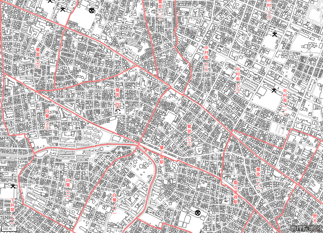 地図の内容は国土地理院が作成した時点の情報を反映しており、実際の現況とは異なる場合があります。現在は存在しない建物や道路、新たに整備された施設などが含まれることがありますので、あらかじめご了承ください。