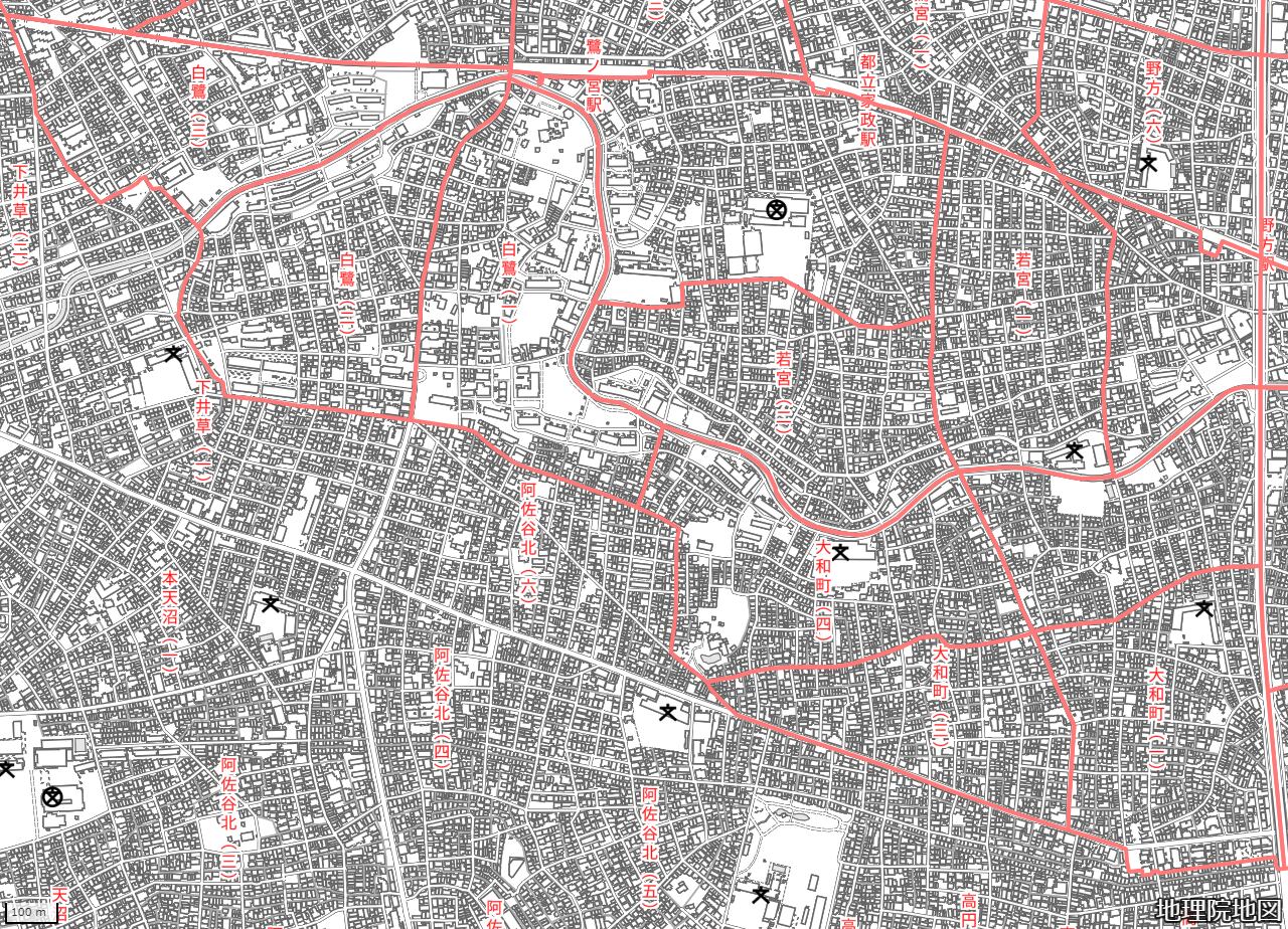 地図の内容は国土地理院が作成した時点の情報を反映しており、実際の現況とは異なる場合があります。現在は存在しない建物や道路、新たに整備された施設などが含まれることがありますので、あらかじめご了承ください。
