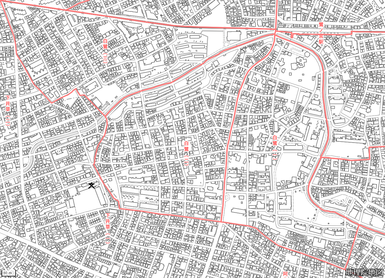 地図の内容は国土地理院が作成した時点の情報を反映しており、実際の現況とは異なる場合があります。現在は存在しない建物や道路、新たに整備された施設などが含まれることがありますので、あらかじめご了承ください。