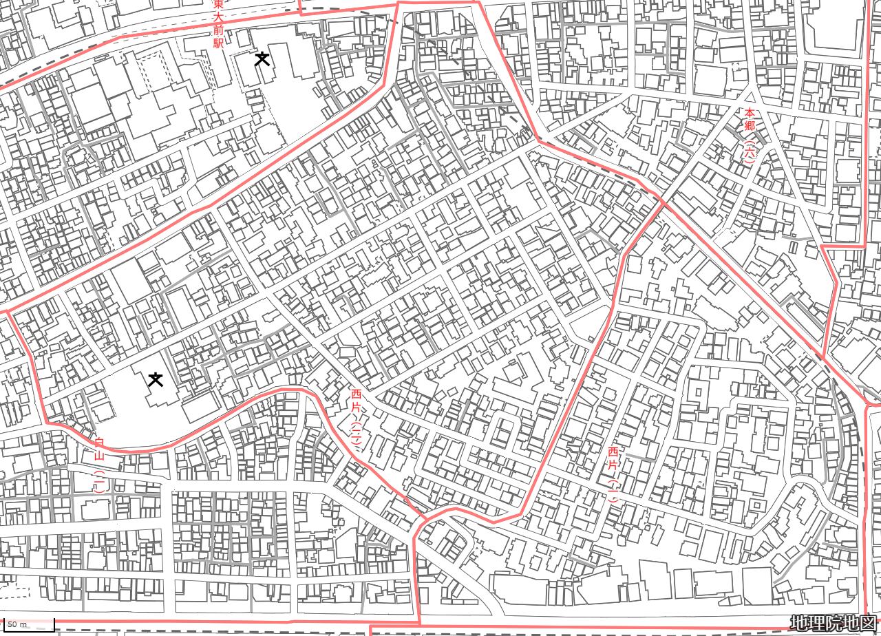 地図の内容は国土地理院が作成した時点の情報を反映しており、実際の現況とは異なる場合があります。現在は存在しない建物や道路、新たに整備された施設などが含まれることがありますので、あらかじめご了承ください。