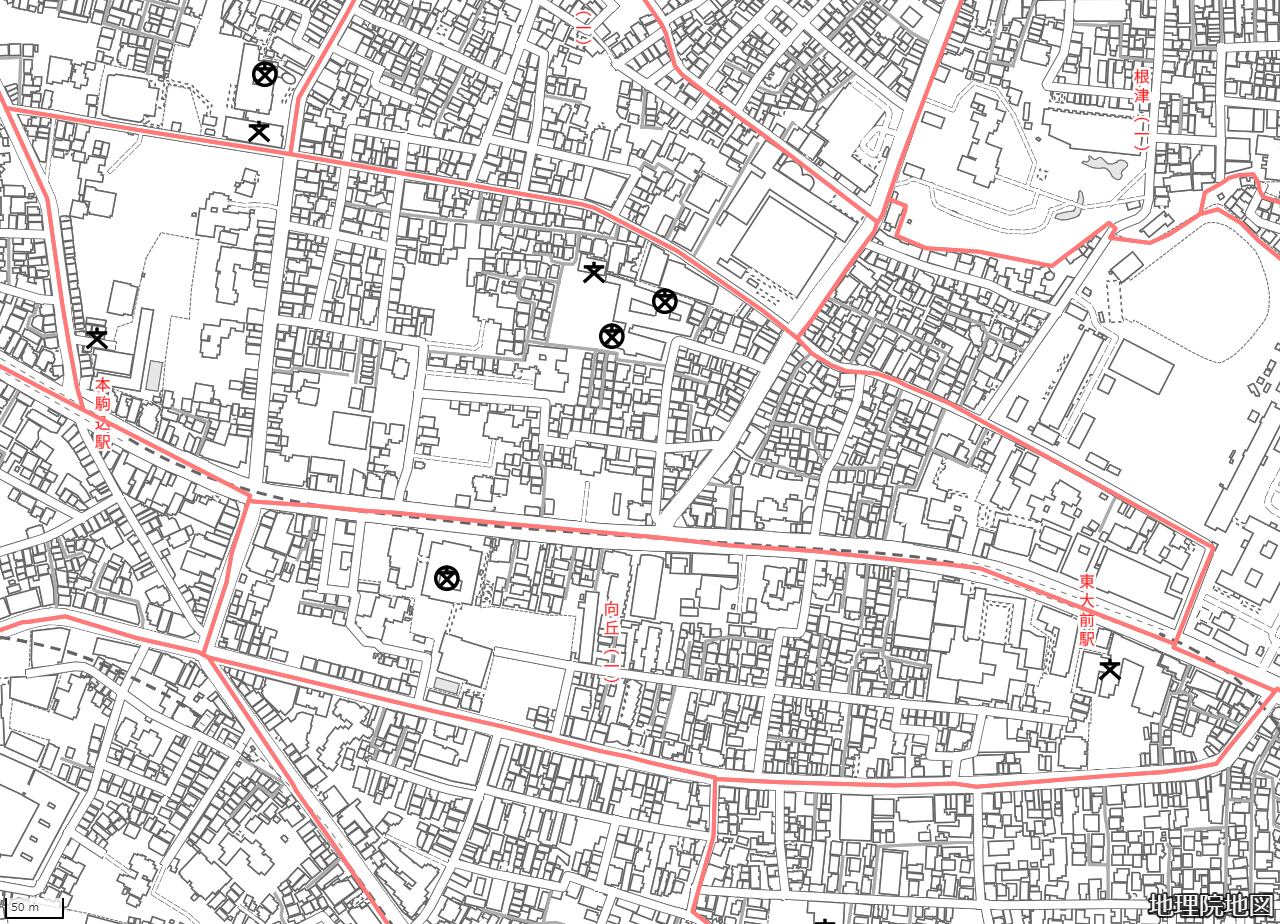 地図の内容は国土地理院が作成した時点の情報を反映しており、実際の現況とは異なる場合があります。現在は存在しない建物や道路、新たに整備された施設などが含まれることがありますので、あらかじめご了承ください。