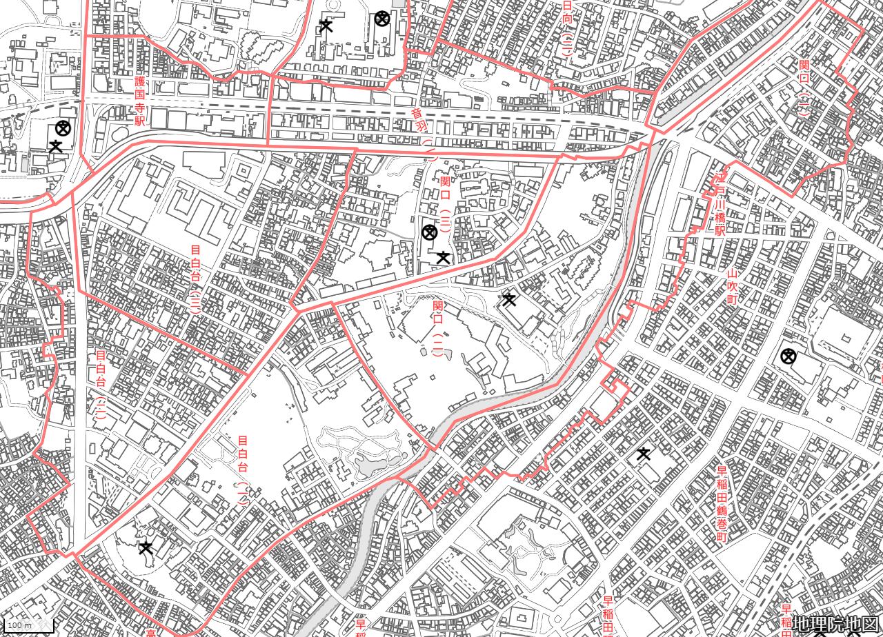 地図の内容は国土地理院が作成した時点の情報を反映しており、実際の現況とは異なる場合があります。現在は存在しない建物や道路、新たに整備された施設などが含まれることがありますので、あらかじめご了承ください。