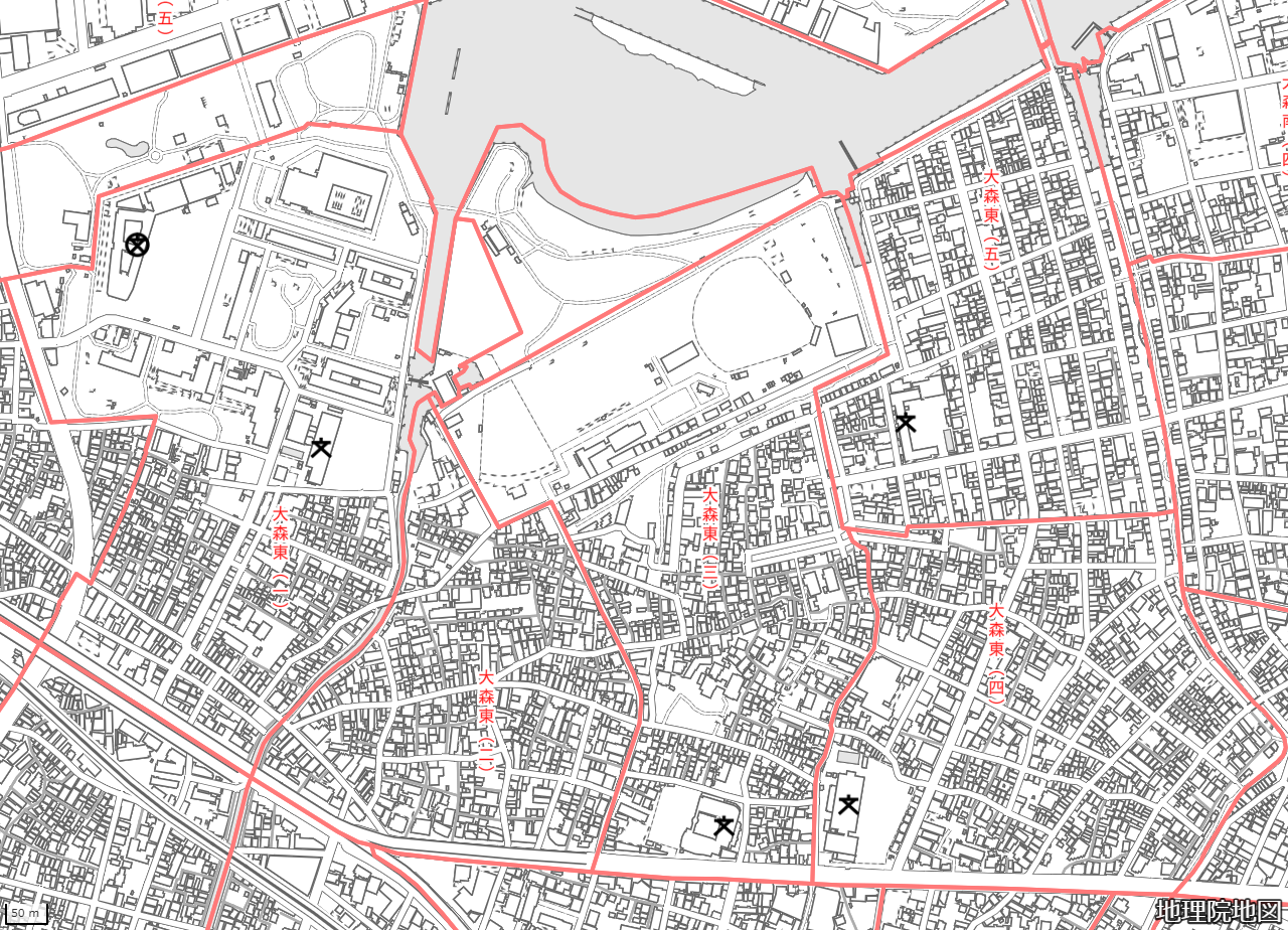 地図の内容は国土地理院が作成した時点の情報を反映しており、実際の現況とは異なる場合があります。現在は存在しない建物や道路、新たに整備された施設などが含まれることがありますので、あらかじめご了承ください。