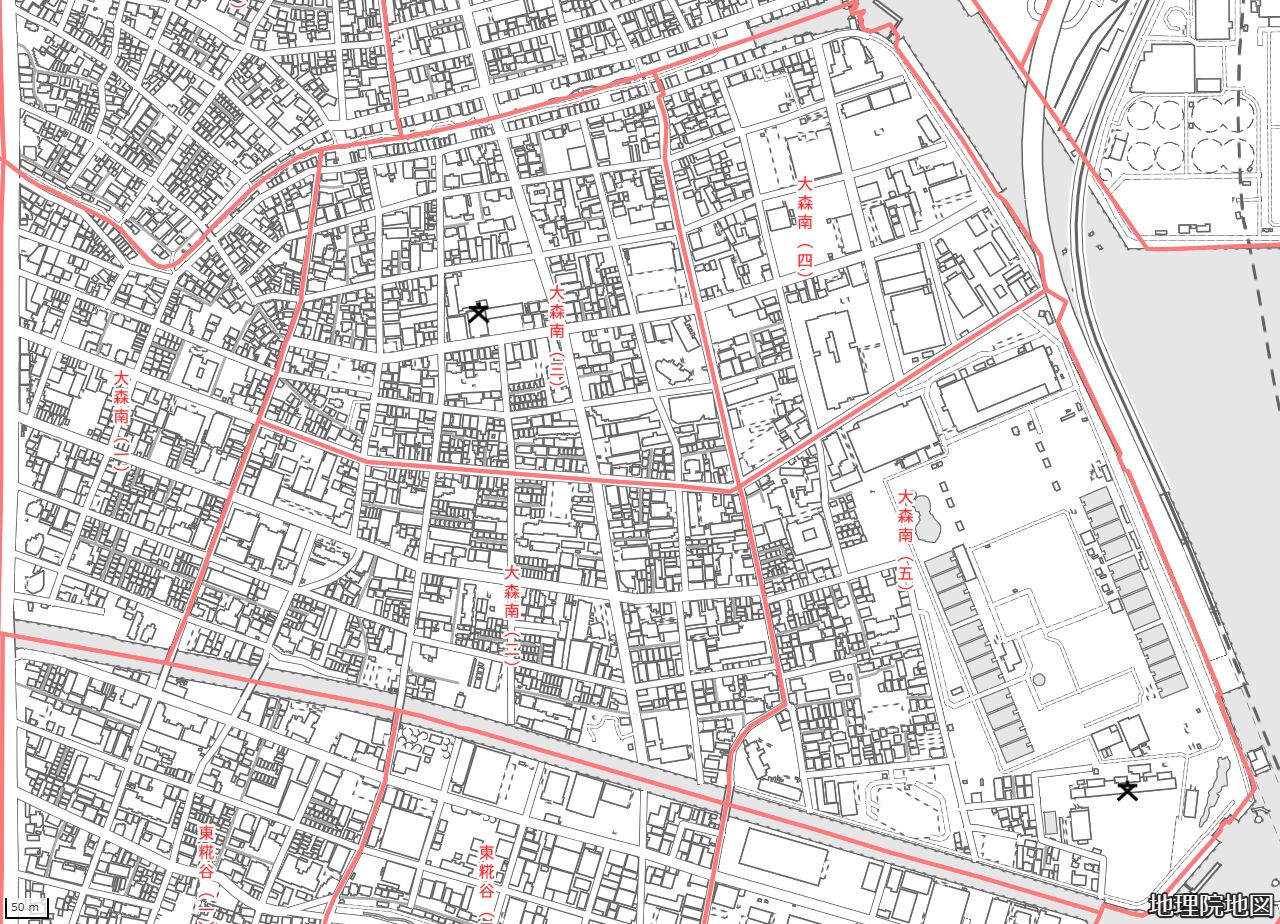 地図の内容は国土地理院が作成した時点の情報を反映しており、実際の現況とは異なる場合があります。現在は存在しない建物や道路、新たに整備された施設などが含まれることがありますので、あらかじめご了承ください。