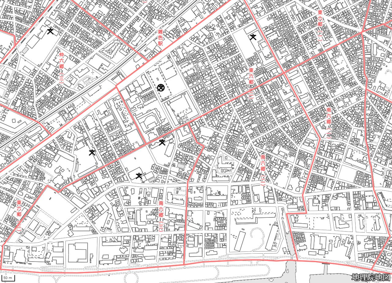 地図の内容は国土地理院が作成した時点の情報を反映しており、実際の現況とは異なる場合があります。現在は存在しない建物や道路、新たに整備された施設などが含まれることがありますので、あらかじめご了承ください。