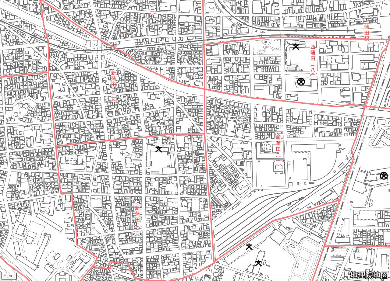 地図の内容は国土地理院が作成した時点の情報を反映しており、実際の現況とは異なる場合があります。現在は存在しない建物や道路、新たに整備された施設などが含まれることがありますので、あらかじめご了承ください。