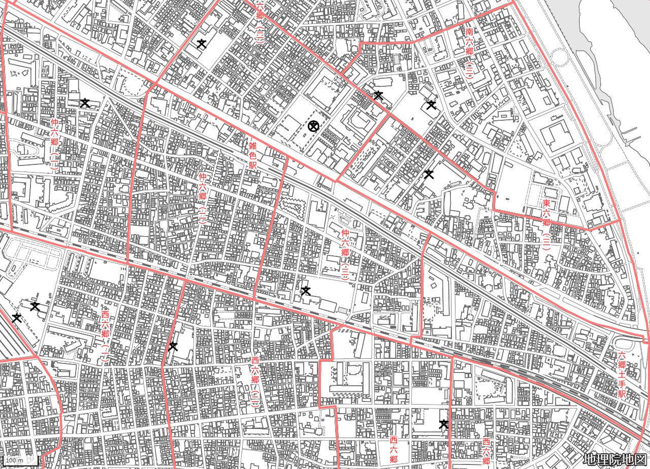 地図の内容は国土地理院が作成した時点の情報を反映しており、実際の現況とは異なる場合があります。現在は存在しない建物や道路、新たに整備された施設などが含まれることがありますので、あらかじめご了承ください。