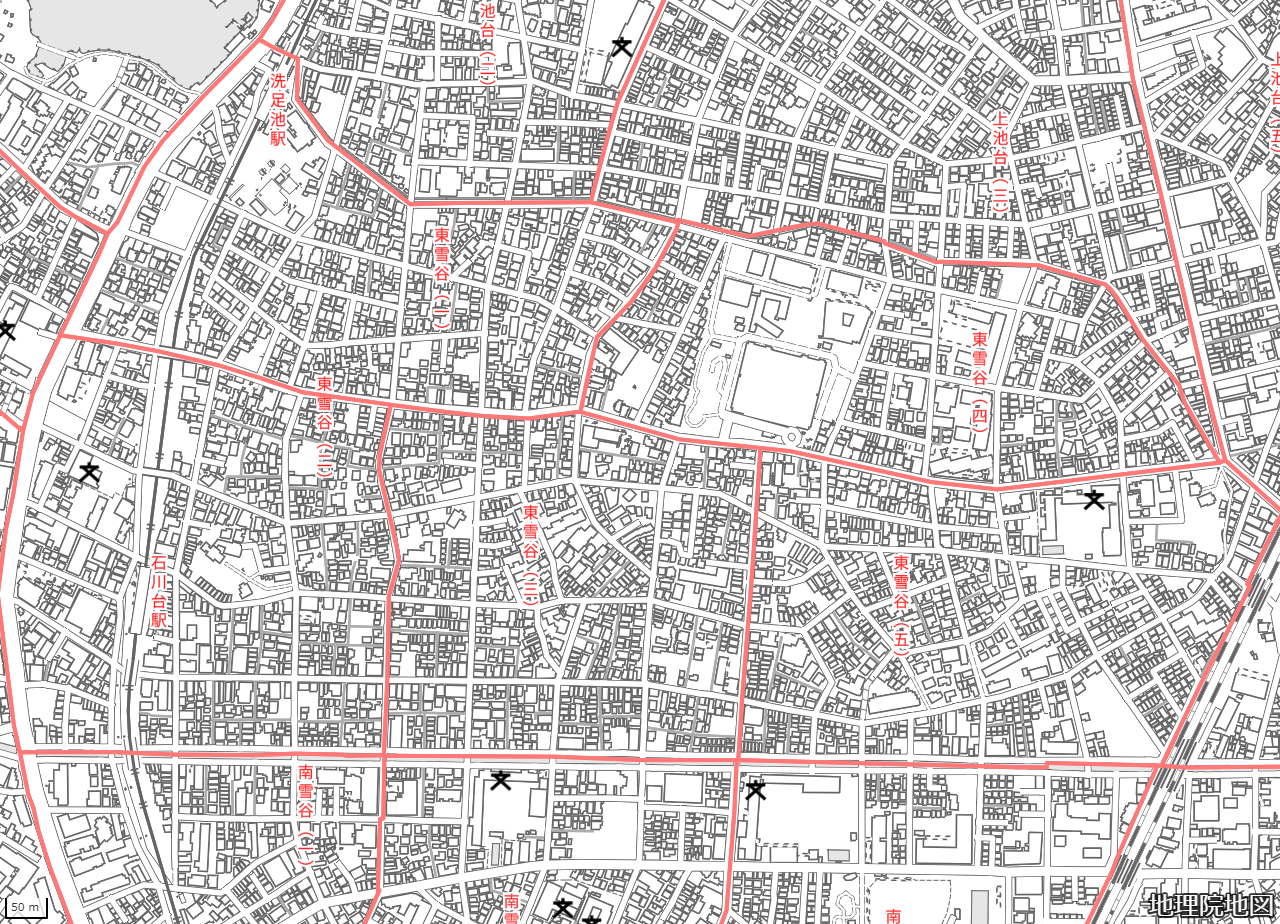 地図の内容は国土地理院が作成した時点の情報を反映しており、実際の現況とは異なる場合があります。現在は存在しない建物や道路、新たに整備された施設などが含まれることがありますので、あらかじめご了承ください。