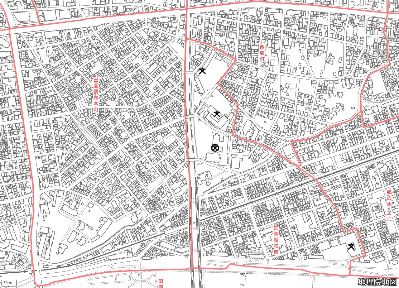 地図の内容は国土地理院が作成した時点の情報を反映しており、実際の現況とは異なる場合があります。現在は存在しない建物や道路、新たに整備された施設などが含まれることがありますので、あらかじめご了承ください。
