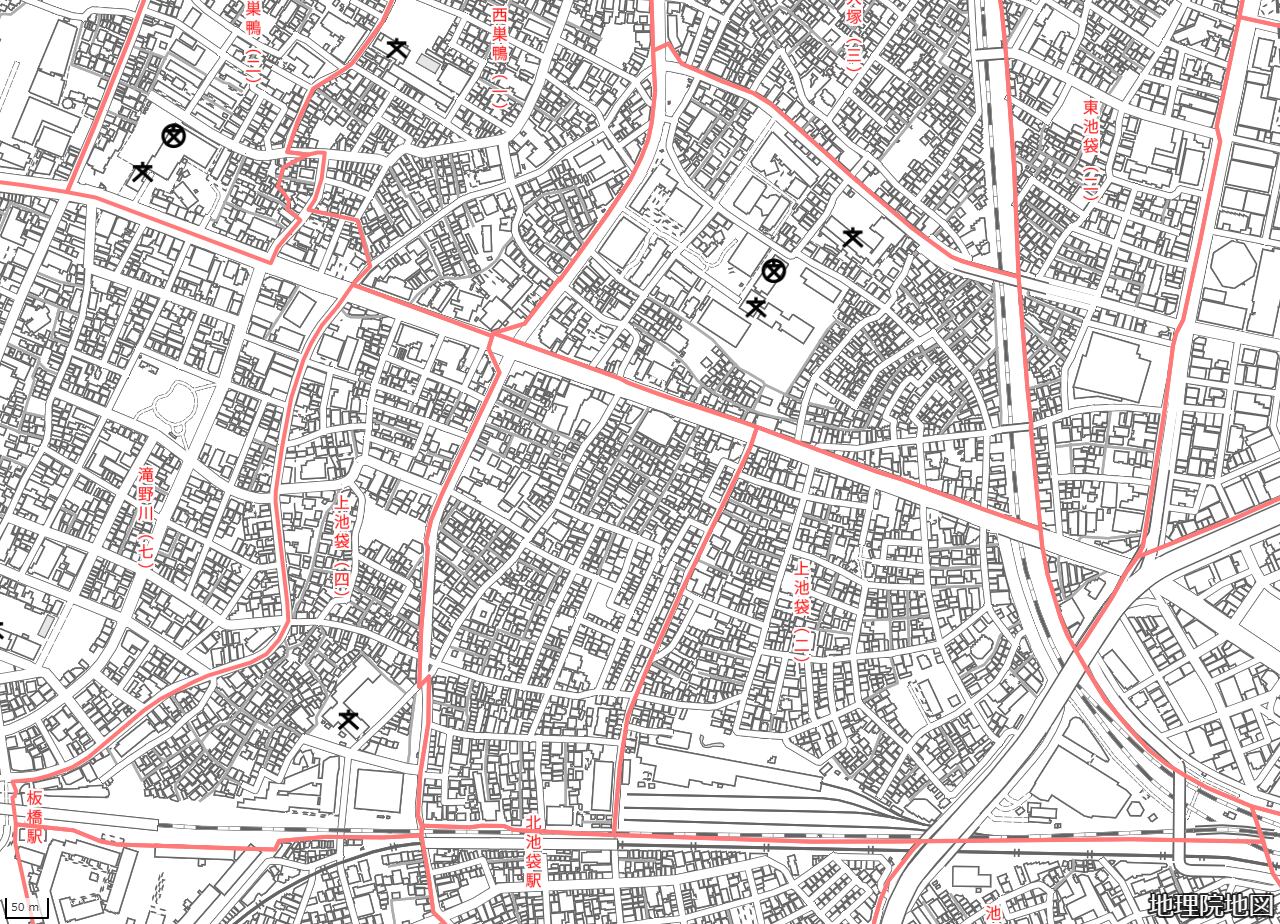 地図の内容は国土地理院が作成した時点の情報を反映しており、実際の現況とは異なる場合があります。現在は存在しない建物や道路、新たに整備された施設などが含まれることがありますので、あらかじめご了承ください。