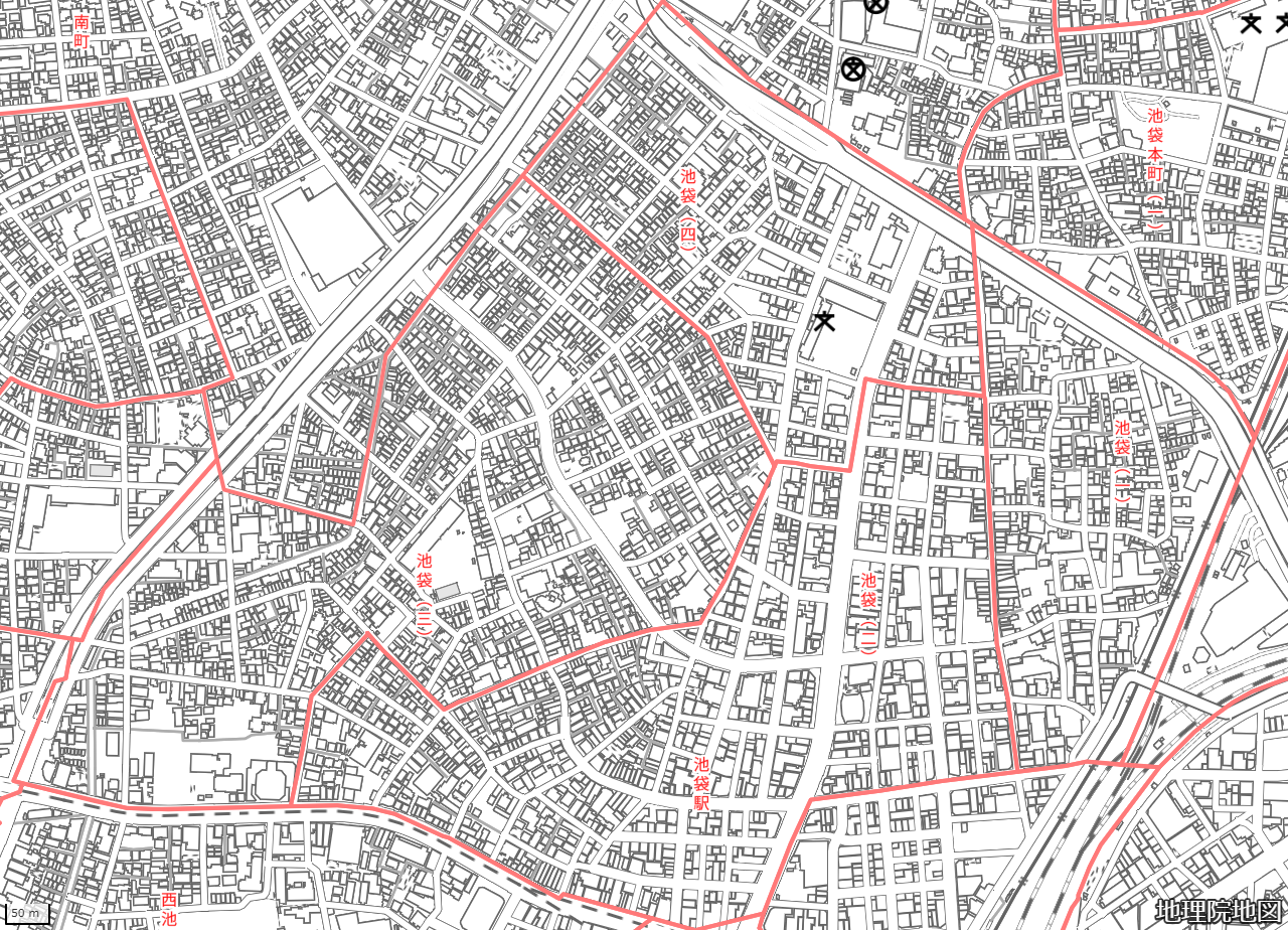 地図の内容は国土地理院が作成した時点の情報を反映しており、実際の現況とは異なる場合があります。現在は存在しない建物や道路、新たに整備された施設などが含まれることがありますので、あらかじめご了承ください。