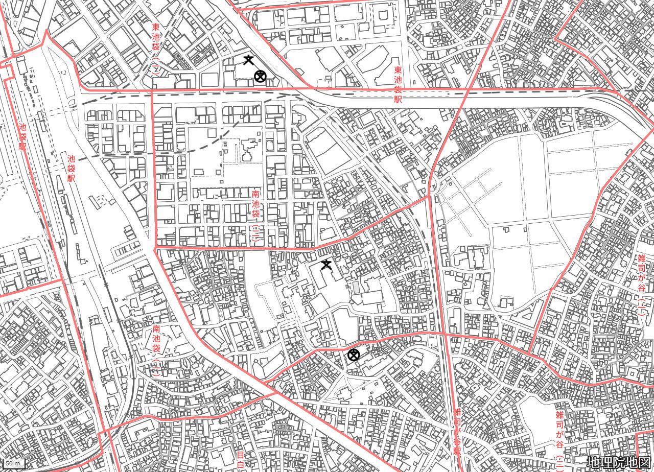 地図の内容は国土地理院が作成した時点の情報を反映しており、実際の現況とは異なる場合があります。現在は存在しない建物や道路、新たに整備された施設などが含まれることがありますので、あらかじめご了承ください。