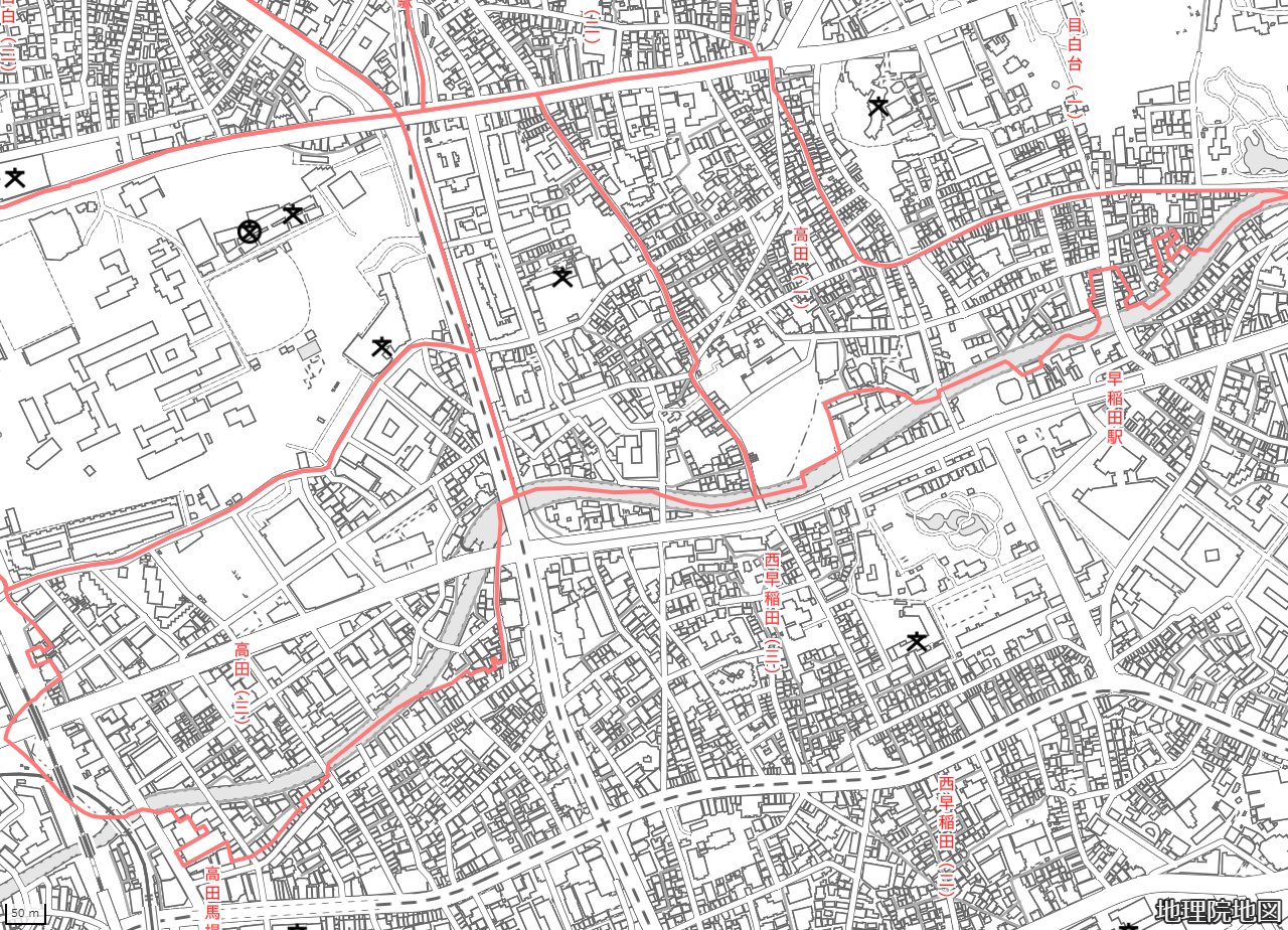 地図の内容は国土地理院が作成した時点の情報を反映しており、実際の現況とは異なる場合があります。現在は存在しない建物や道路、新たに整備された施設などが含まれることがありますので、あらかじめご了承ください。