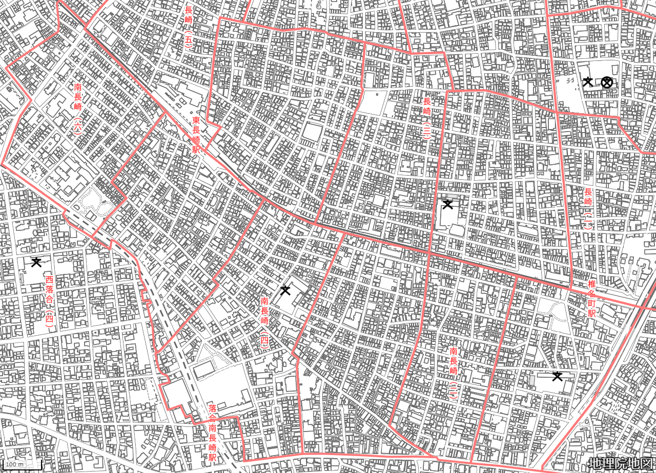 地図の内容は国土地理院が作成した時点の情報を反映しており、実際の現況とは異なる場合があります。現在は存在しない建物や道路、新たに整備された施設などが含まれることがありますので、あらかじめご了承ください。