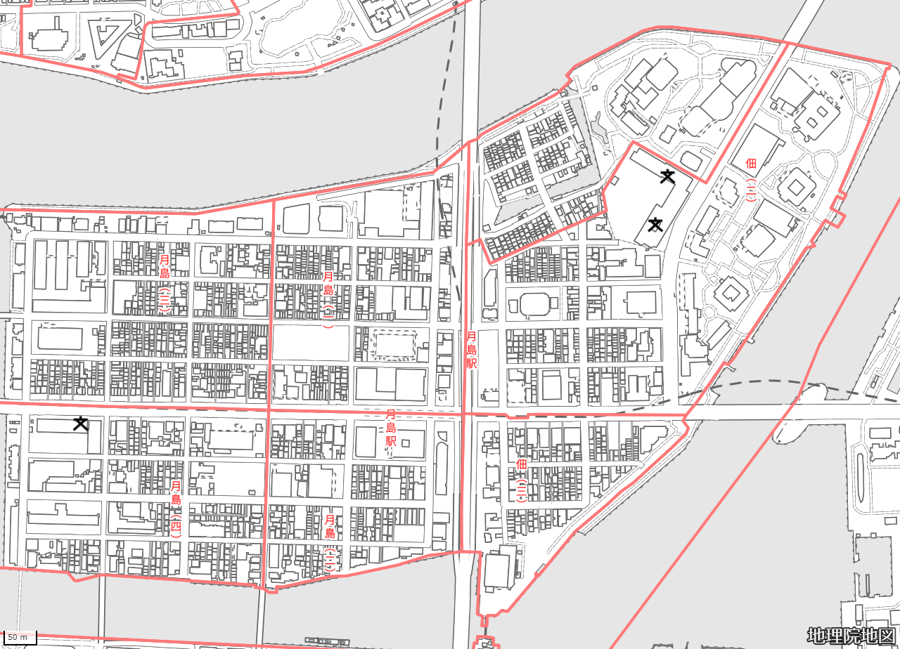 地図の内容は国土地理院が作成した時点の情報を反映しており、実際の現況とは異なる場合があります。現在は存在しない建物や道路、新たに整備された施設などが含まれることがありますので、あらかじめご了承ください。