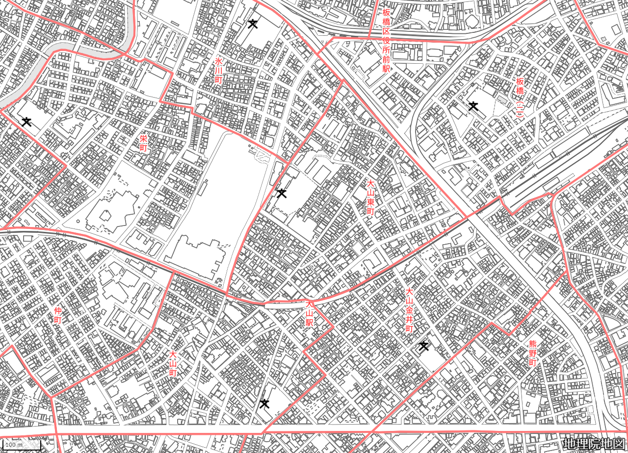 地図の内容は国土地理院が作成した時点の情報を反映しており、実際の現況とは異なる場合があります。現在は存在しない建物や道路、新たに整備された施設などが含まれることがありますので、あらかじめご了承ください。