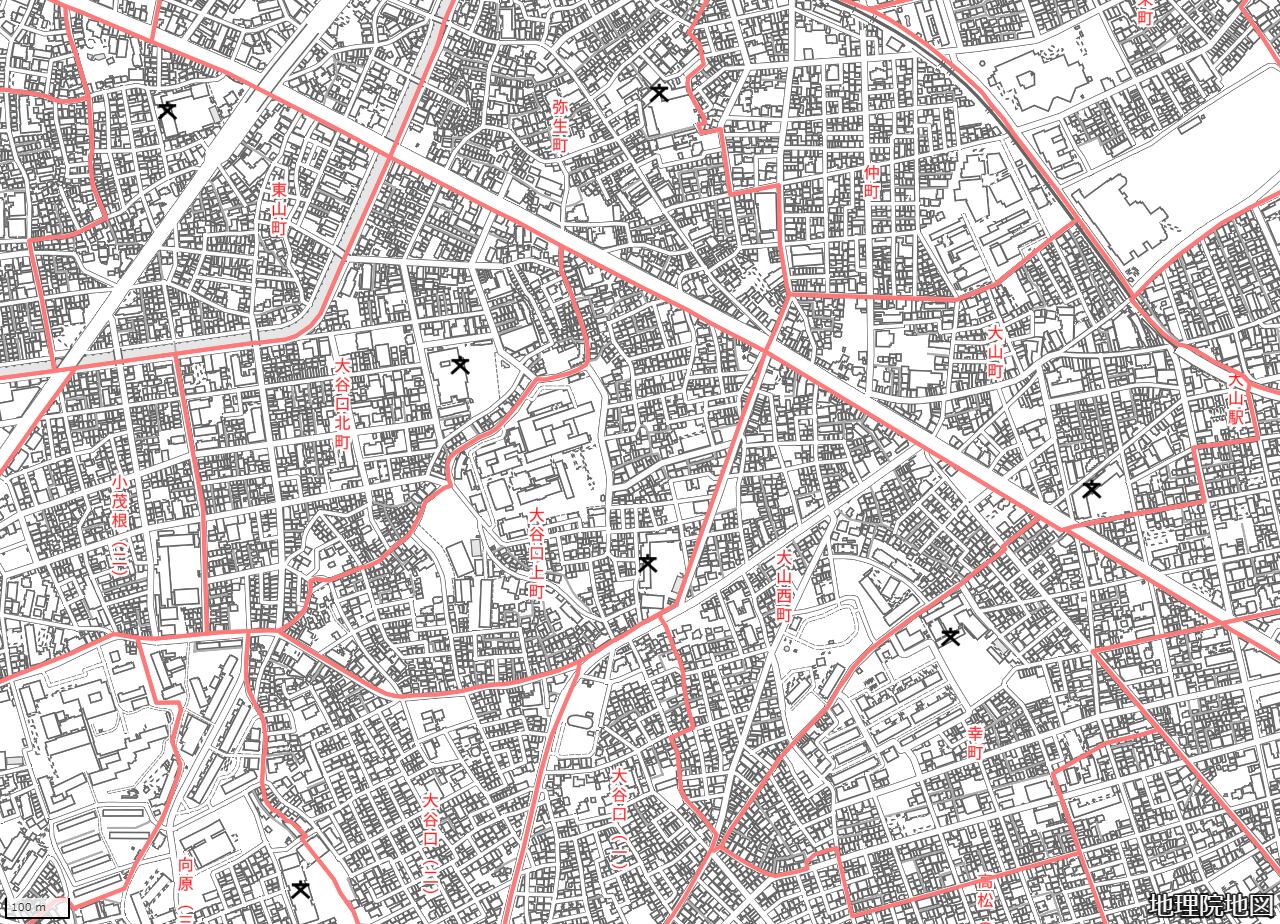 地図の内容は国土地理院が作成した時点の情報を反映しており、実際の現況とは異なる場合があります。現在は存在しない建物や道路、新たに整備された施設などが含まれることがありますので、あらかじめご了承ください。