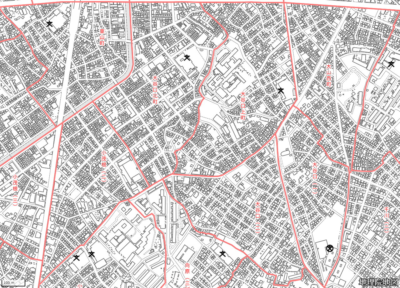 地図の内容は国土地理院が作成した時点の情報を反映しており、実際の現況とは異なる場合があります。現在は存在しない建物や道路、新たに整備された施設などが含まれることがありますので、あらかじめご了承ください。