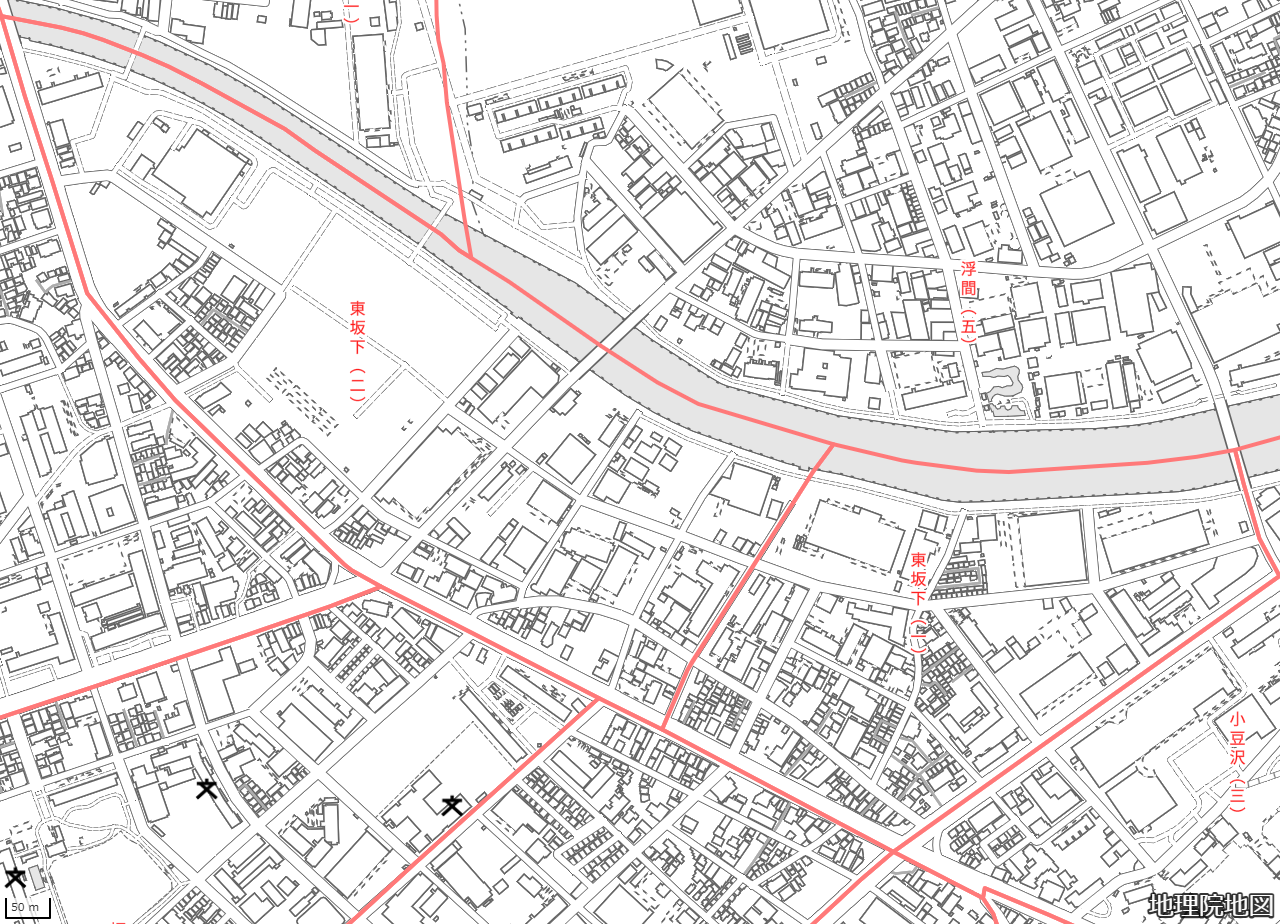 地図の内容は国土地理院が作成した時点の情報を反映しており、実際の現況とは異なる場合があります。現在は存在しない建物や道路、新たに整備された施設などが含まれることがありますので、あらかじめご了承ください。