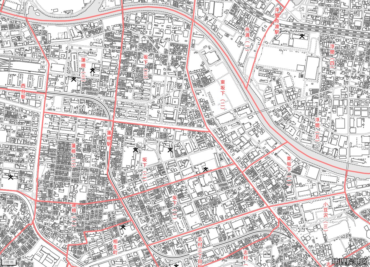 地図の内容は国土地理院が作成した時点の情報を反映しており、実際の現況とは異なる場合があります。現在は存在しない建物や道路、新たに整備された施設などが含まれることがありますので、あらかじめご了承ください。